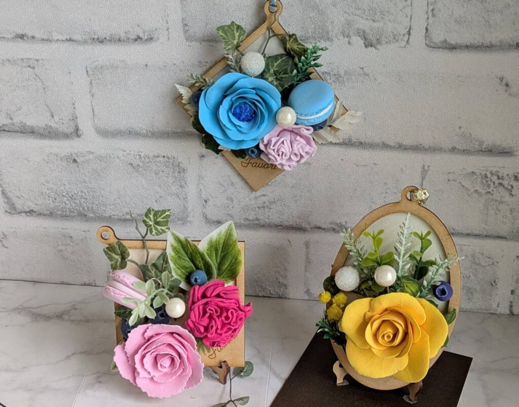 プリザ夢華~クレイフラワーで、様々なアレンジ作品が生まれます。