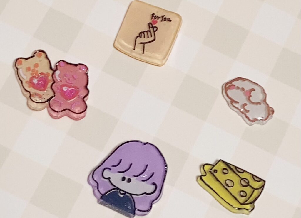 プラ板で、いろんな形、大きさで作っています。